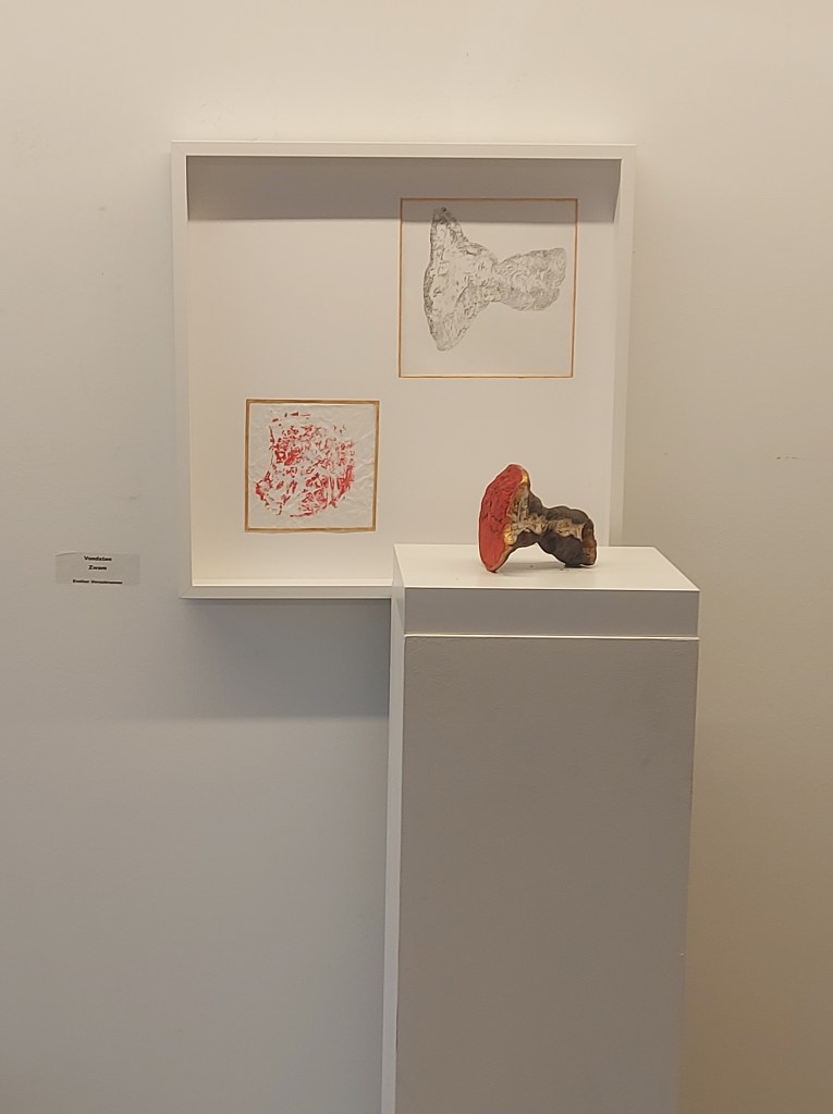 Linoprints, tekeningen en schilderijen (of aquarellen) brengen de onbenoembare emoties zoals verlies, angst en machteloosheid tot leven. Tegelijkertijd wordt het herontdekken van geduld, tijd en het koesteren van het moment vastgelegd in krachtige beelden.